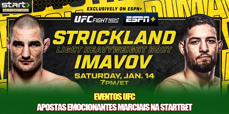 Os eventos UFC oferecem uma experiência de artes marciais de alto nível e ritmo acelerado, com muitas variáveis imprevisíveis. O STARTBET serve como uma plataforma de informações completa, facilitando a entrada de novos fãs de MMA. Visite o site hoje mesmo para ficar por dentro dos principais eventos e não perder nenhum confronto importante.